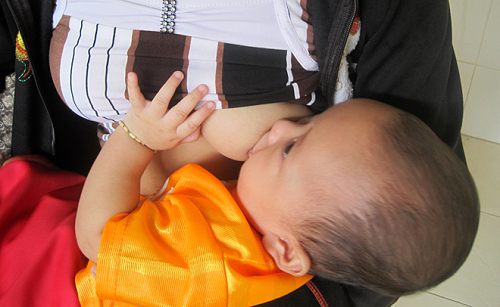 Trẻ cần được bú mẹ sớm sau sinh và hoàn toàn trong 6 tháng đầu đời. Ảnh: Lê Phương.