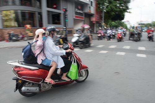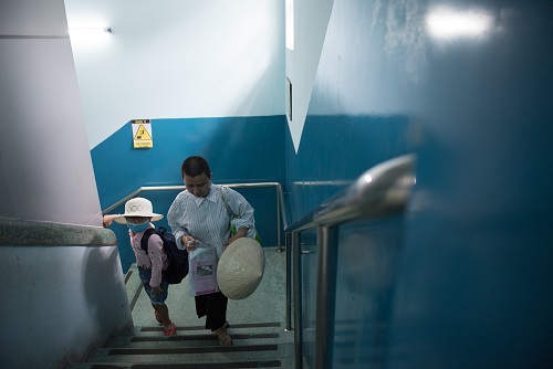 Chị Vân đưa bé Quỳnh đi học ở Phú Nhuận.