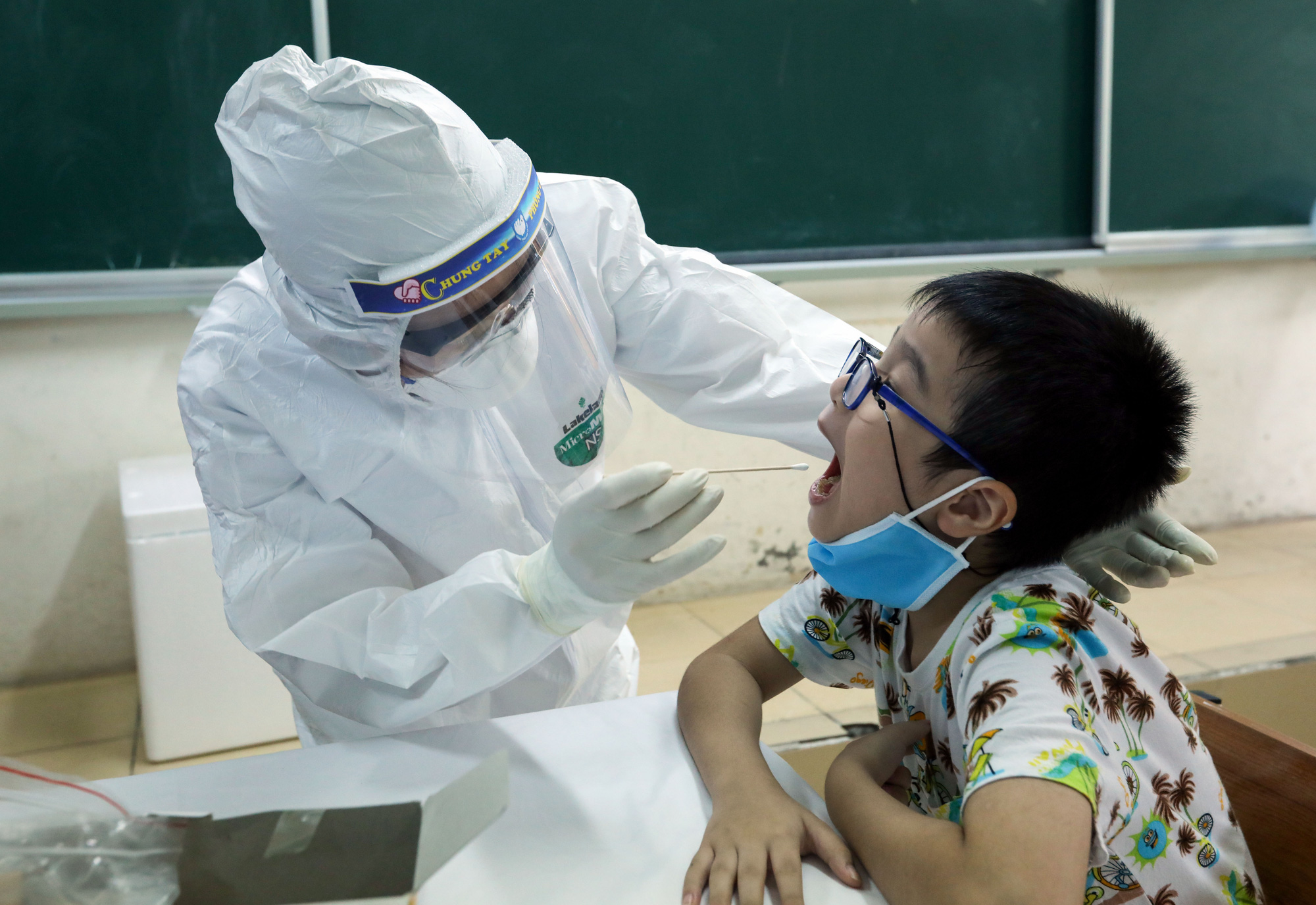 Lấy mẫu xét nghiệm sàng lọc COVID-19 - Ảnh: VIỆT DŨNG